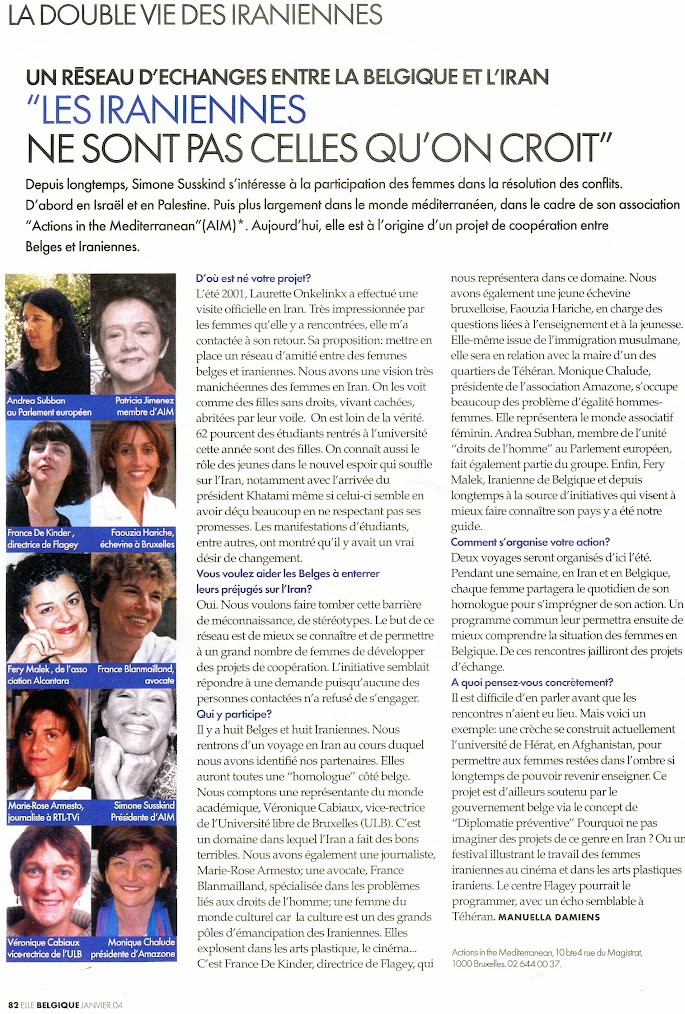 Un tel réseau d'amitié devrait permettre aux femmes iraniennes de mieux connaître la vie et les activités des femmes belges, tant francophones que néérlandophones.
