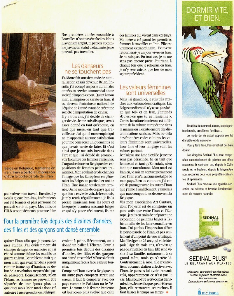 C’est le succès et surtout la méconnaissance des gens de la société culturelle iranienne qui m’a incitée à refaire l’expérience, cette fois, ici, à Mons- la capitale culturelle de la Wallonie en espérant faire retentir l’écho des talents de ces artistes d’Iran qui méritent une reconnaissance internationale.