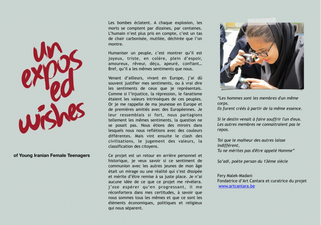 "This is not the first time that Belgians are hosting our exhibitions. Two years ago we had an exhibition of paintings here, and, since 2001, we had many exhibitions in Belgium, one of them was "10 women painters of Iran" that we renewed 10 years later with the same painters in March 2011 in Brussels.